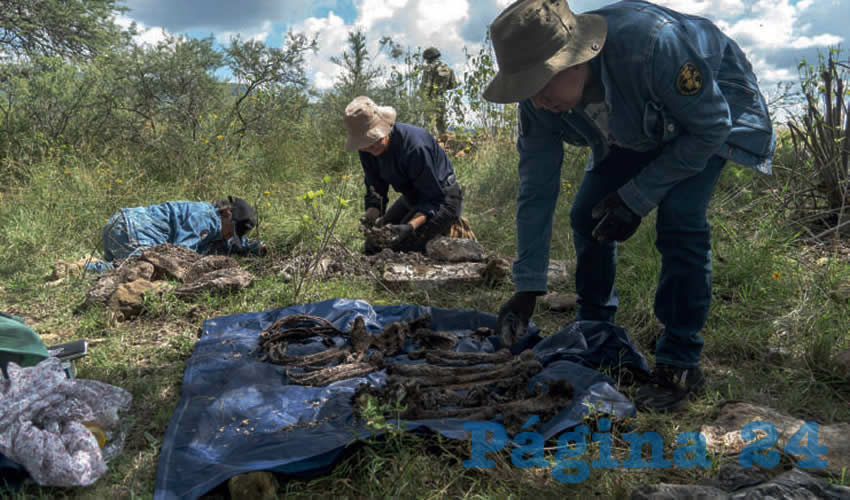 Acompañadas de policías de investigaci ón y peritos de la Fiscalía del Estado, las madres, hermanas y esposas de personas desaparecidas también pertenecientes al colectivo Buscadoras Zacatecas, A. C. recorrieron la zona con picos, varillas y palas, hasta lograr con la localización de los restos óseos expuestos en lugar y más tarde encontraron varias fosas en donde fueron apareciendo cráneos, dientes, costillas, diversos huesos, ropas y otras prendas, posiblemente de las mismas víctimas.
