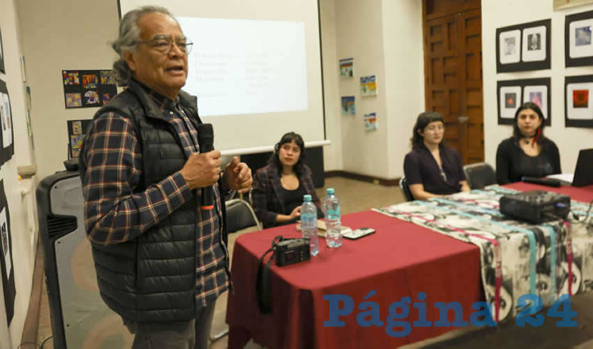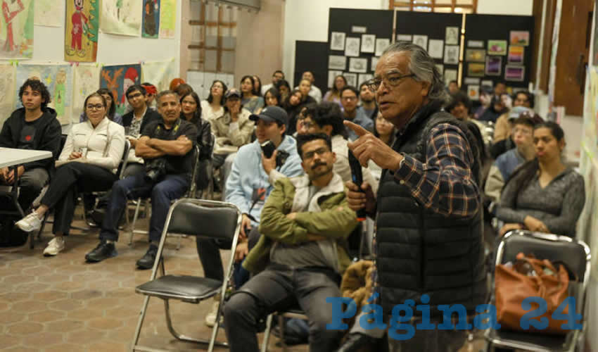 Pedro Valtierra, fotoperiodista y director de la Agencia y Revista Cuartoscuro, durante el conversatorio con jóvenes “Reflexiones sobre la fotografía documental y periodística contemporánea en México” en el marco del Festival Huellas Artísticas 2025, realizado el pasado viernes en la Casa Municipal de Cultura, en la capital del estado (Fotos: Adolfo Vladimir/Cuartoscuro)
